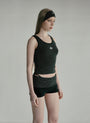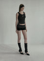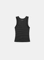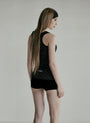 A slim body line that wraps around from the waist down. Sturdy weave with double stitching on the neckline and armholes.