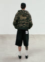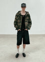 Camo hood zip-up made of soft cotton material with a military feel.