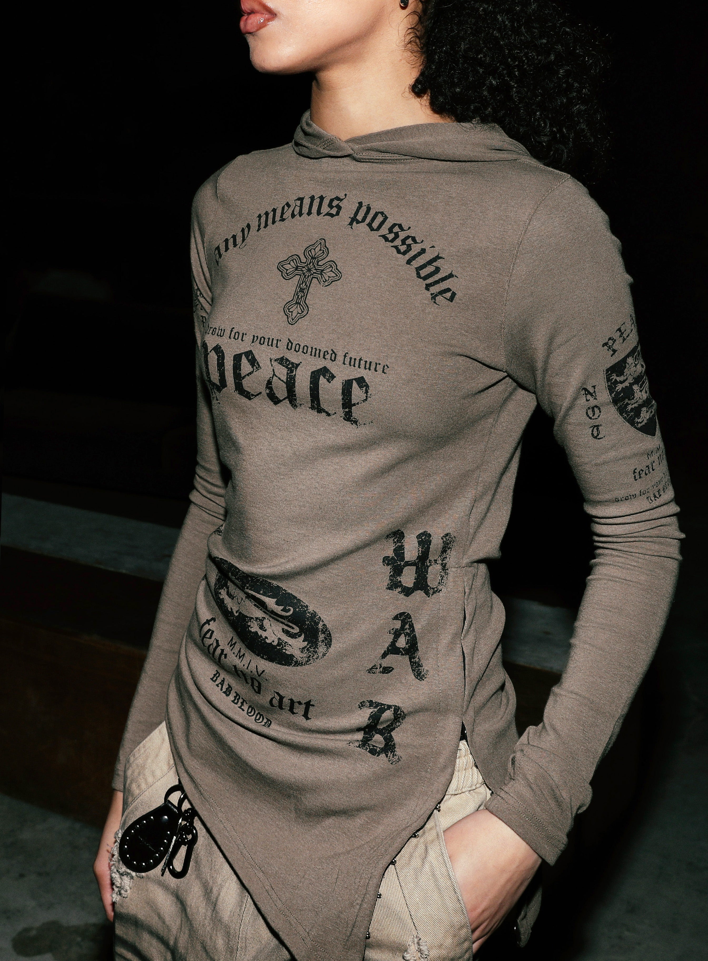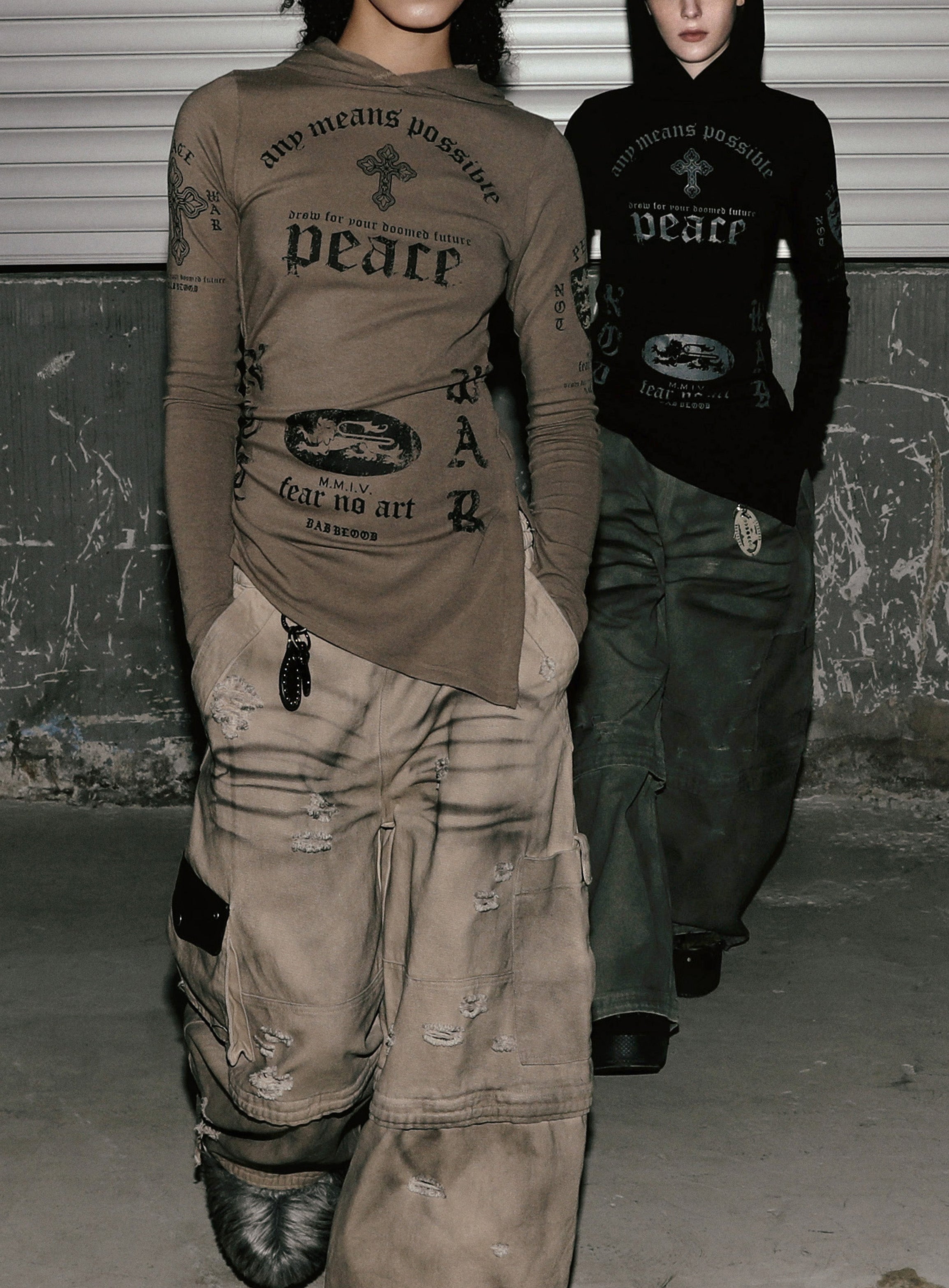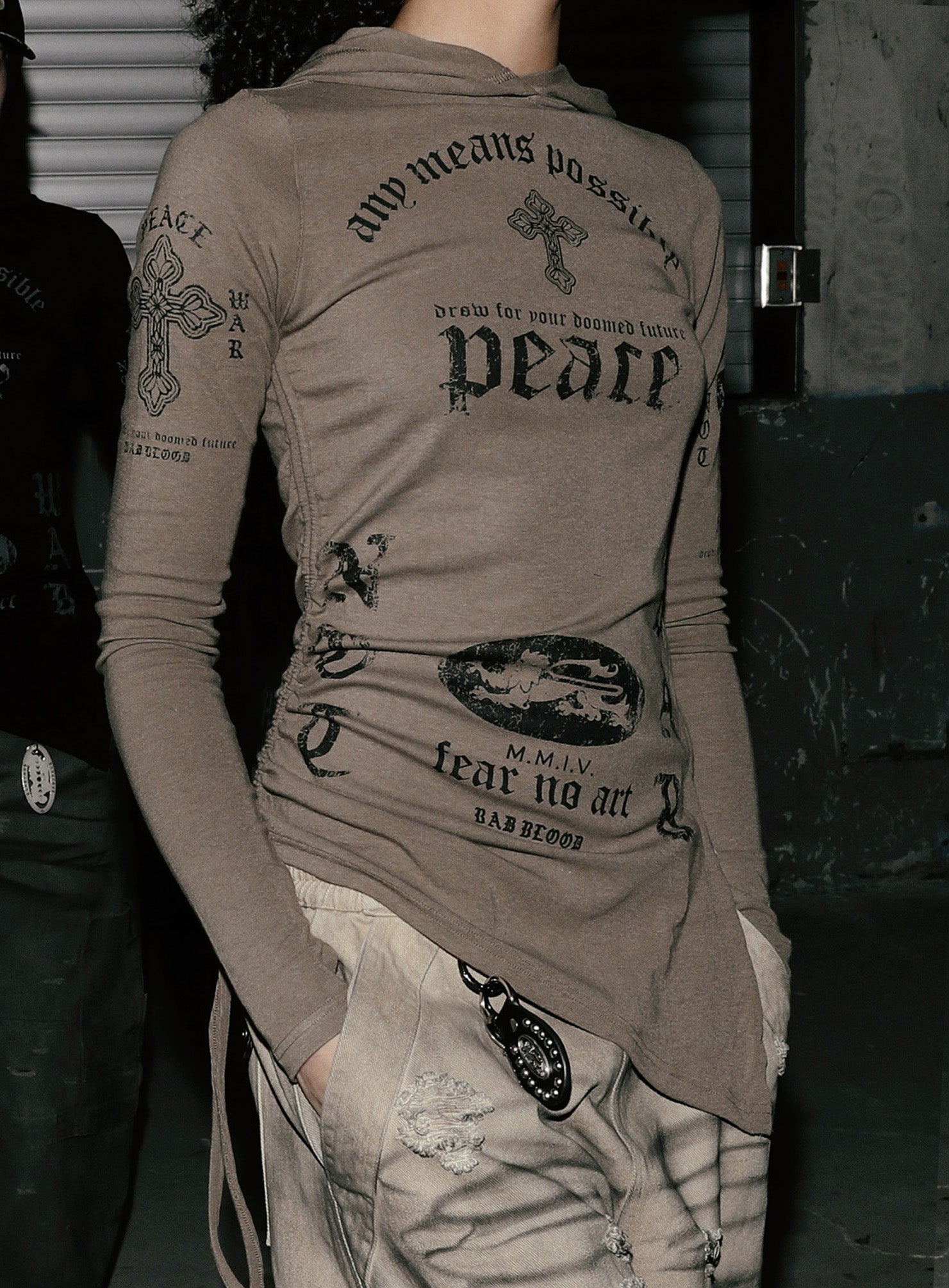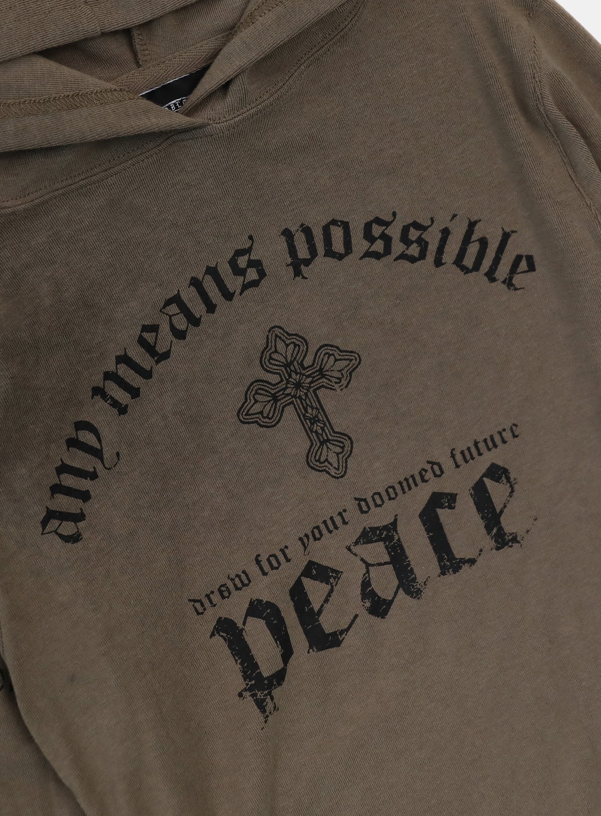 Badblood PEACE NOT WAR Slim Cutout Hoodie - Tobacco
