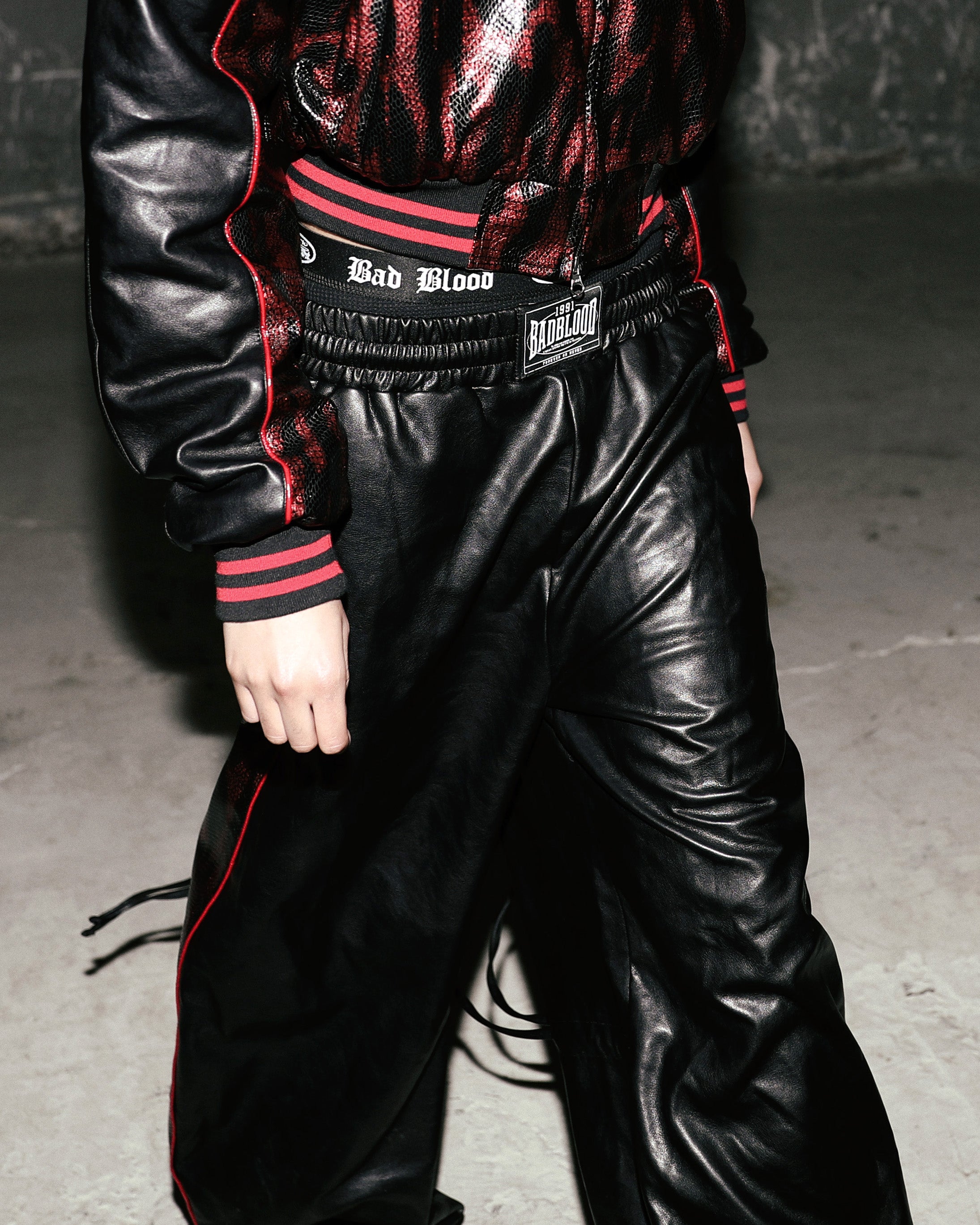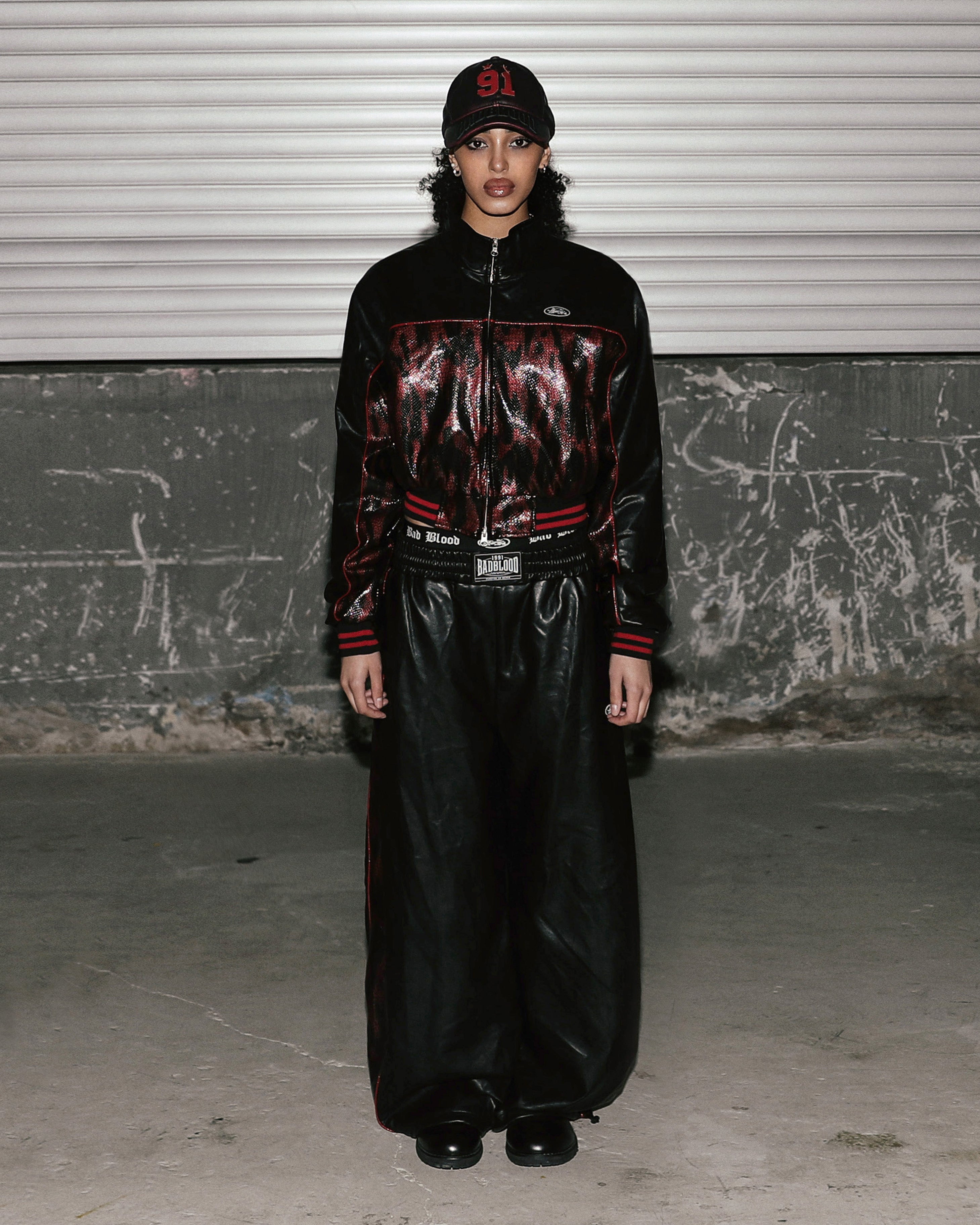 前幅搭配 獅子刺繡補丁,正面與內部附有 Badblood 織標,後幅則以 Badblood 立體刺繡 Logo 點綴,增添街頭感。