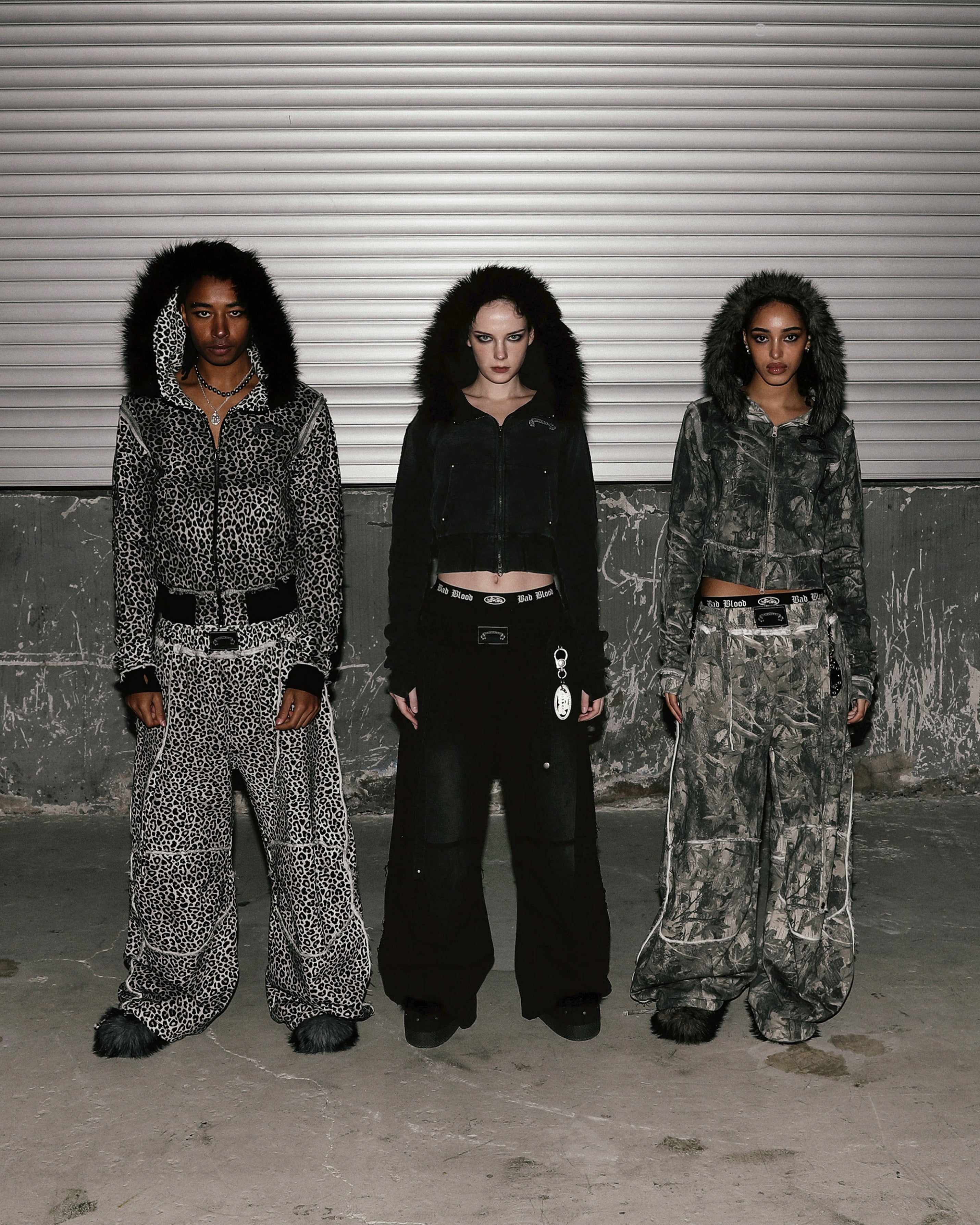 使用髒舊老化加工方式,突顯復古洗水和強烈品牌標誌細節的獅子補丁 2 Way 曲線設計運動褲。