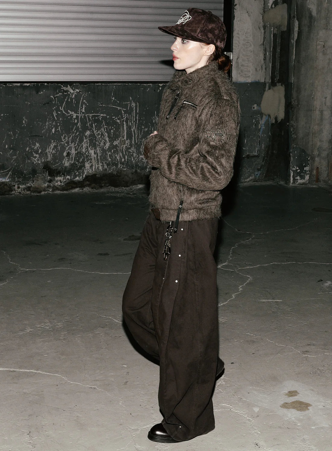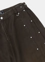 側邊設有鉚釘調節扣,可調整腰圍,褶線處亦有鉚釘裝飾細節。