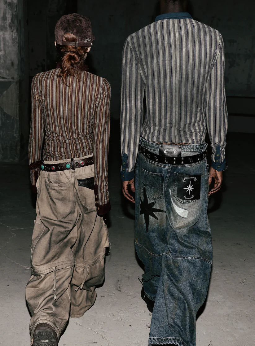 Badblood 0409 Cosmo Convex Denim Pants - Mid Blue