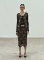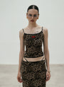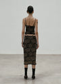 A leopard midi skirt made of spandex blend material for a light and cool fit.