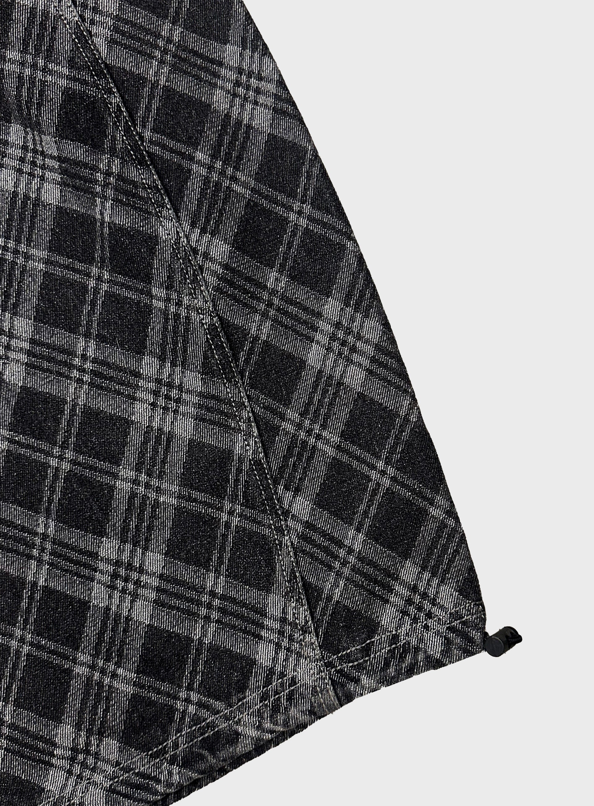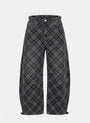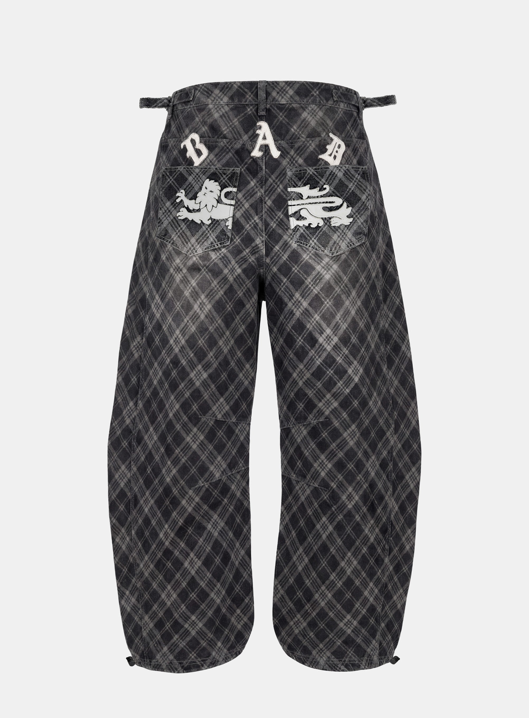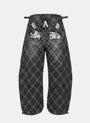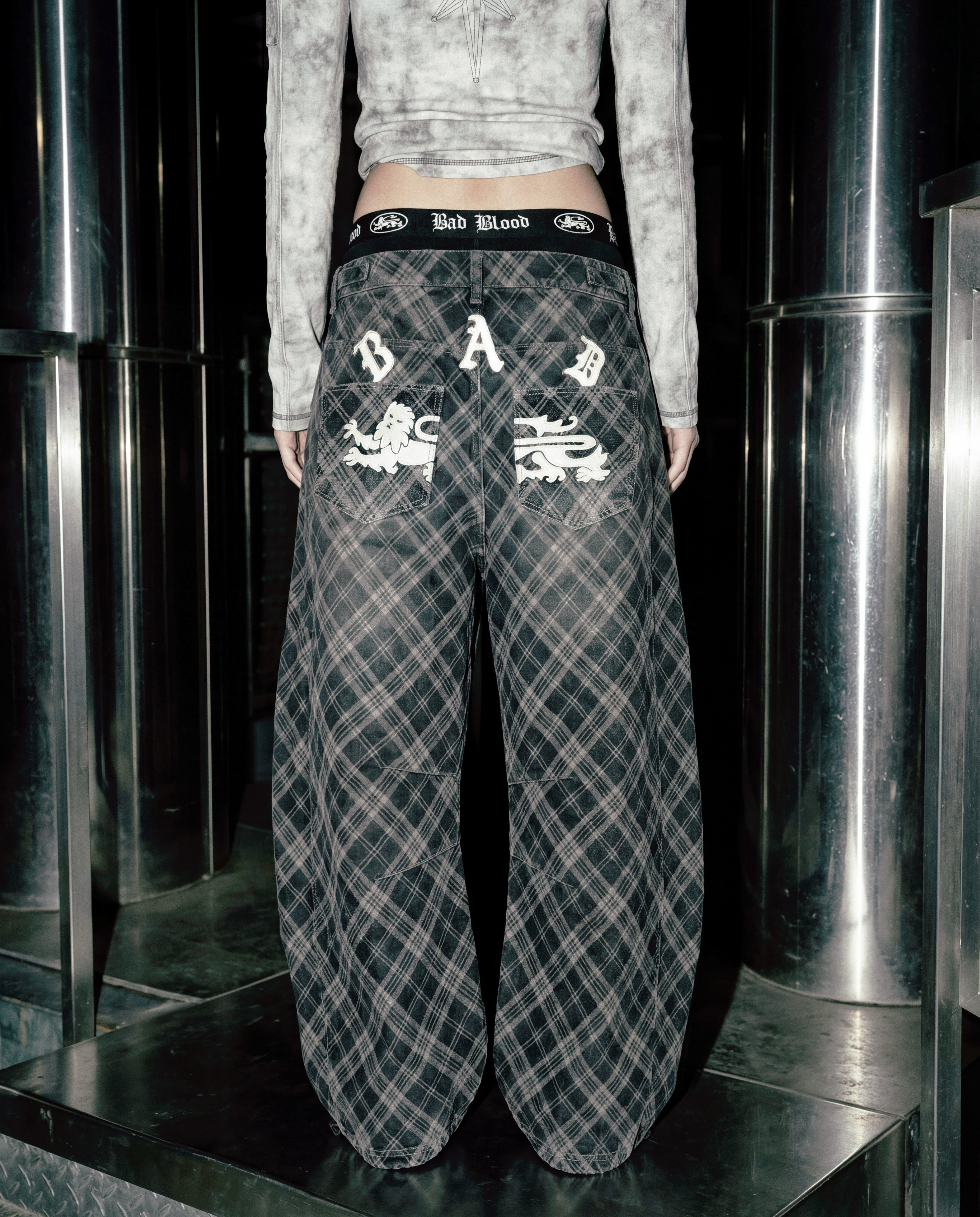 Badblood Lion Patch Washed Barrel Pants - Black Denim Check