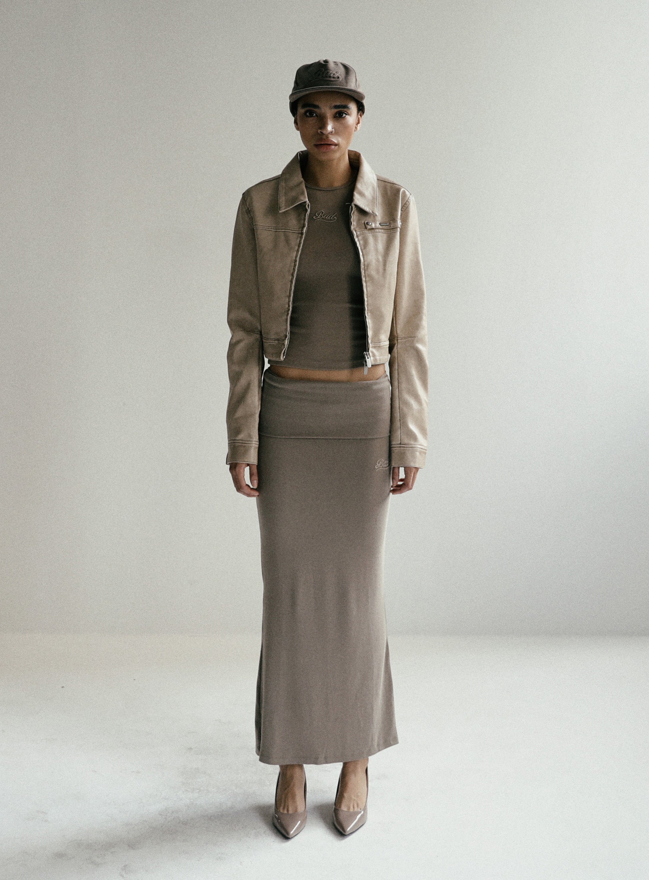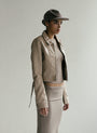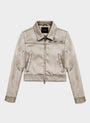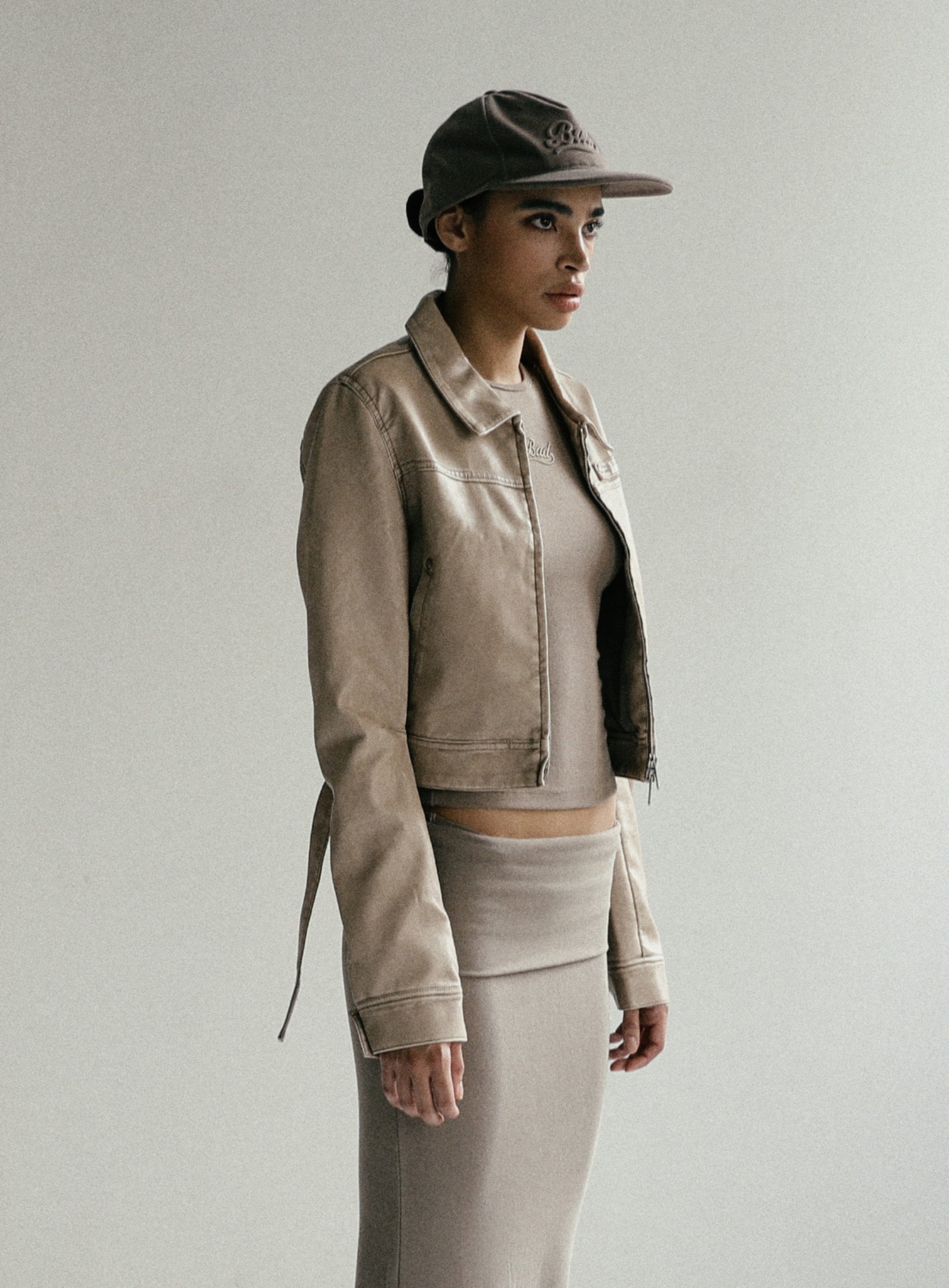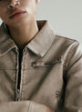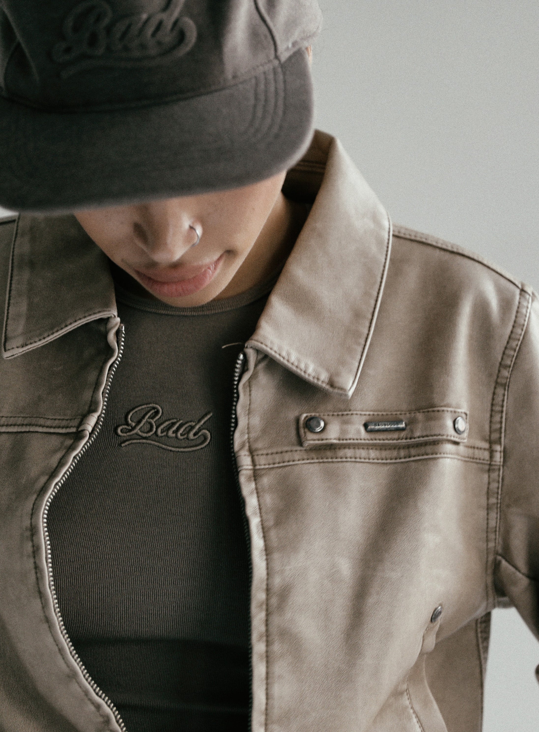 A washed leather Harrington jacket with a vintage vibe that stands out for its natural washing.