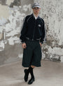 2way zipper. Bad logo on the front. Back satin Badblood logo.