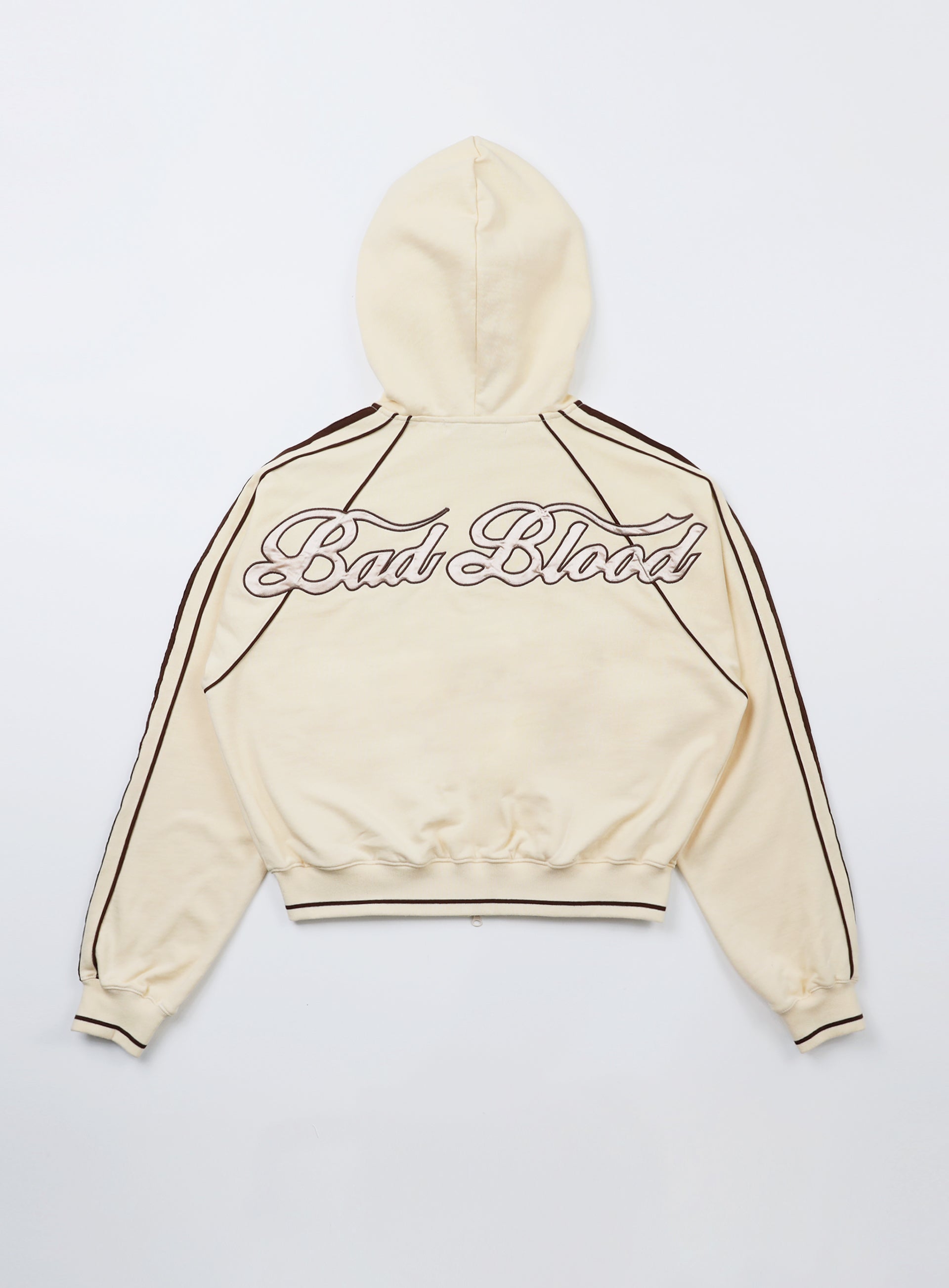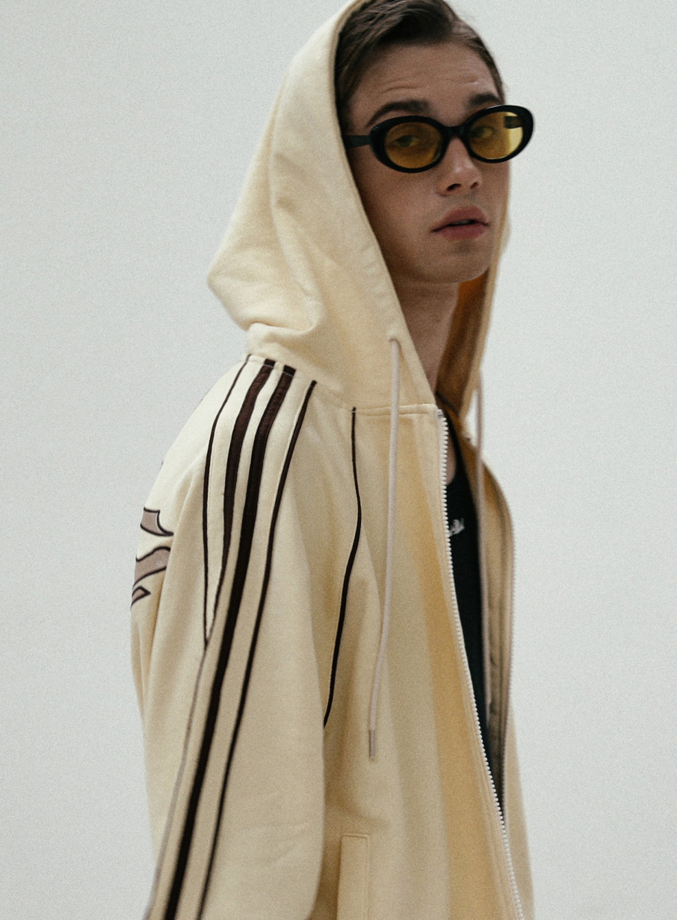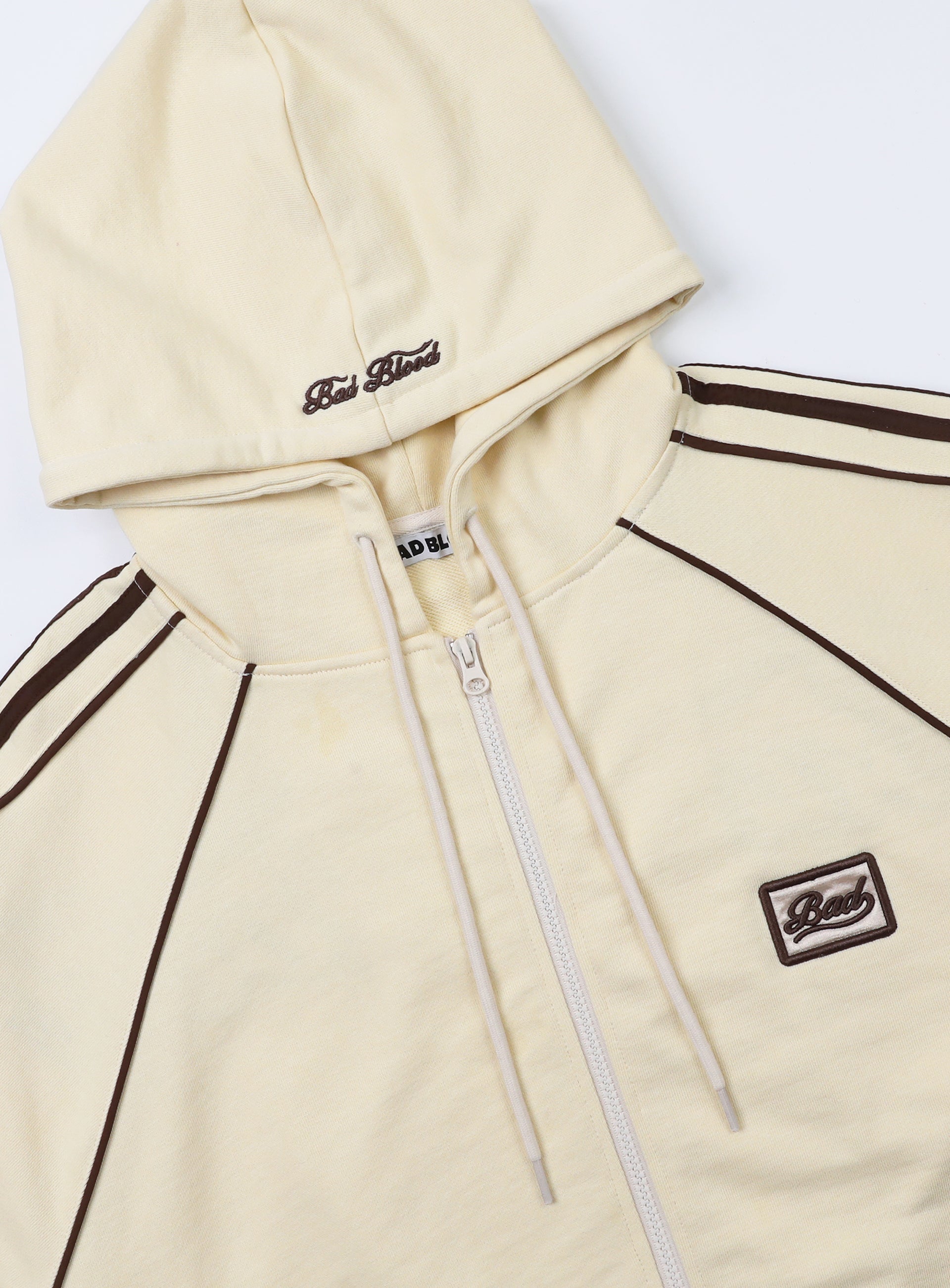 Billy hooded zip-up with a retro mood and sporty design in two color combinations.
