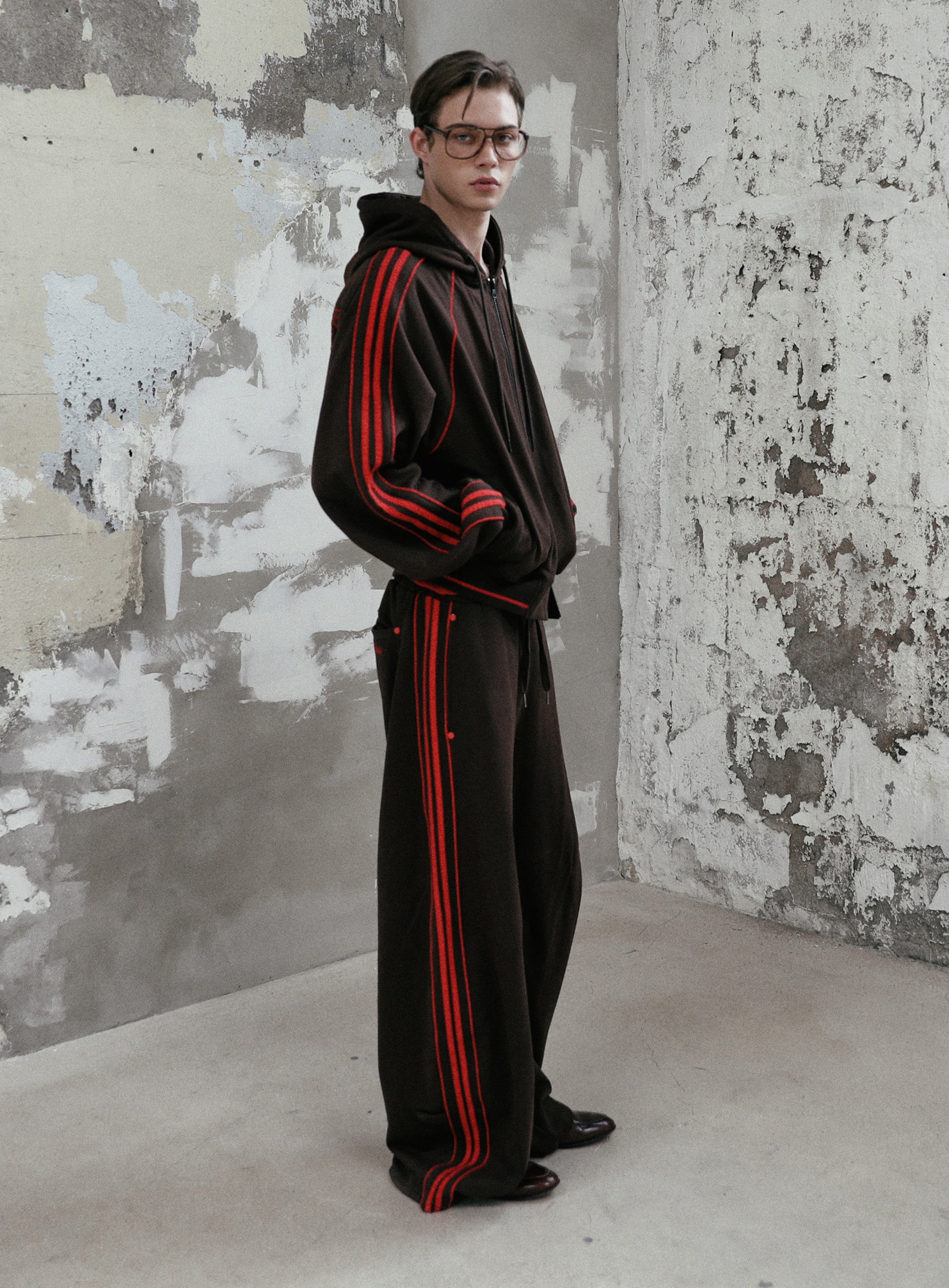 Ribbed neckline and hem sleeves. Welt pockets on both front sides. Side color combination double line detail.