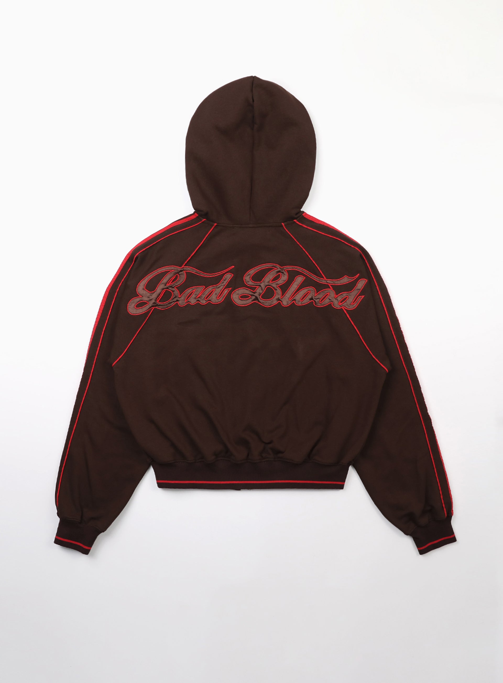 2way zipper. Bad logo on the front. Rear Badblood logo.