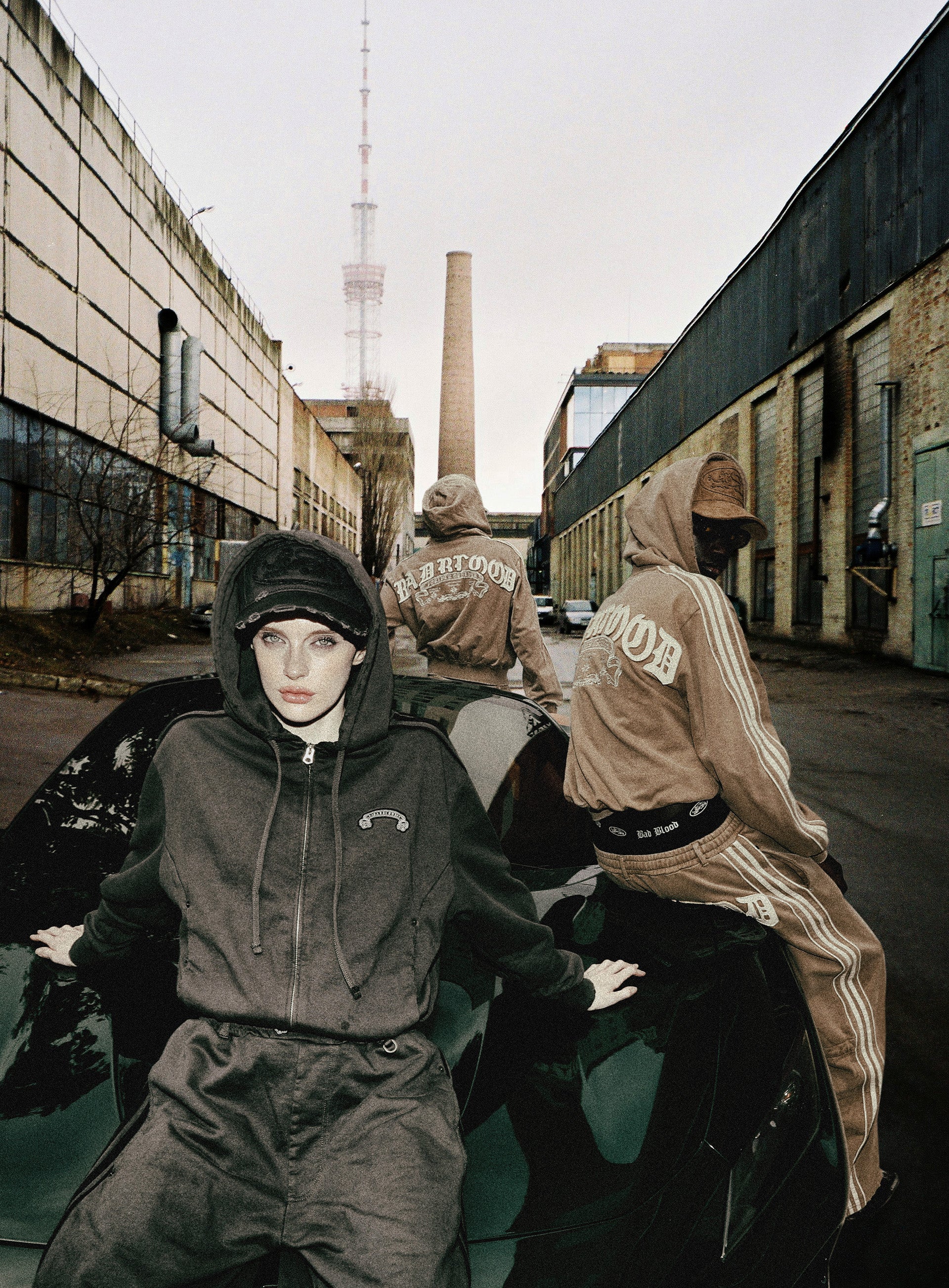 Bad square patch logo on the front. Badblood distressed patch logo on the back.