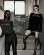 DETAIL A dark classic scoop neck long sleeve made of soft viscose fabric with a spandex blend for a comfortable fit and natural silhouette Small print points on sleeves and lower front. Front dark classic print logo. Back typography print logo. * Slim fit that hugs the body * Deep round neckline * Front dark classic print logo * Back typography print logo * Thickness Thin / No see-through / Elastic / No lining