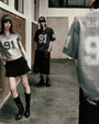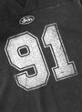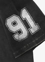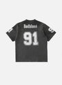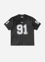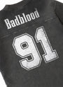 DETAIL 91 Crack Print V-neck T-shirt with a sporty mood and vintage washing using dirty aging processing. Old effect details. V neckline. Front, sleeve 91 print logo. Lion emblem print logo. Back Badblood print. Large 91 print logo. * Unisex (S size – Slim fit / M size – Slim fit Unisex (Women 66-88 / Men 100-105 / L, XL size - Loose fit * V neckline * Front BadBlood gold print logo. BadBlood classic print logo. * Back BadBlood logo and large print logo * Thickness Thin / No see-through / No elasticity / No lining FABRIC 100% Cotton