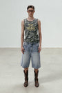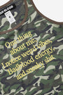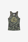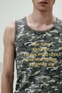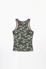 Camo tank top with excellent stretch made from spandex blend ribbed fabric.