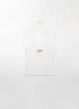 Pointel halter tank made of 100% cotton yarn knit material for a comfortable fit.