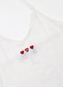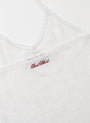 Finished with lace trim. Bad heart logo embroidery detail at the top front. Badblood script embroidered logo on top back.
