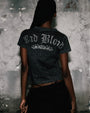 Front distressed Bad Lion emblem logo. Back Badblood diploma logo print.