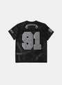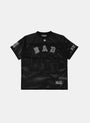 DETAIL Matt poly fabric with net weave for breathability Workshop Net Rugby Jersey. Contrast panel detailing on neckline, sleeves, and hem. Sleeve 91, Blood print. Front signature BAD applique. Star Wappen. Bottom woven lion label. Back Big 91 applique. Badblood banner logo. * Relaxed fit for comfortable wear. * Front signature BAD applique. Star Wappen. Bottom woven lion label. * Back Big 91 applique. Badblood banner logo. * Thin / See-through / No elasticity / No lining