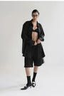 Regular collar shape and loosely falling shoulder line. Button fly cuffs. side hook