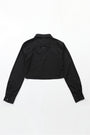 Regular collar shape. Button fly cuffs. Side dart detail and shirring detail adjustable with string.